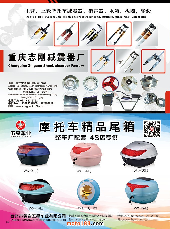 2017.8月《摩托車/電動車與配件》雜志,歡迎大家閱讀日期:2017-07-31 點擊:2378 查看原圖 全部展開![]() ![]() ![]() 內86 重慶志剛減震器廠