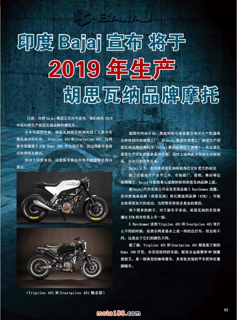 內49 印度Bajaj宣布 將于2019年生產胡思瓦納品牌摩托