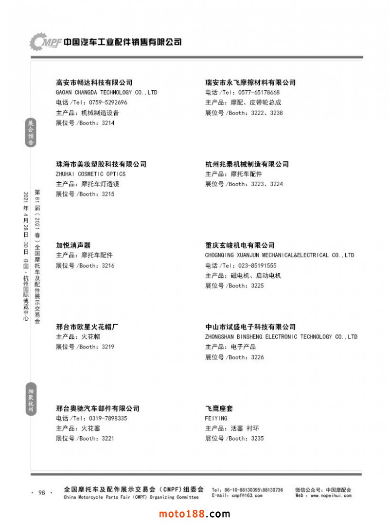 內(nèi)98 第80屆(2020秋)全國摩托車及配件展示交易會-廣州站參展企業(yè)信息