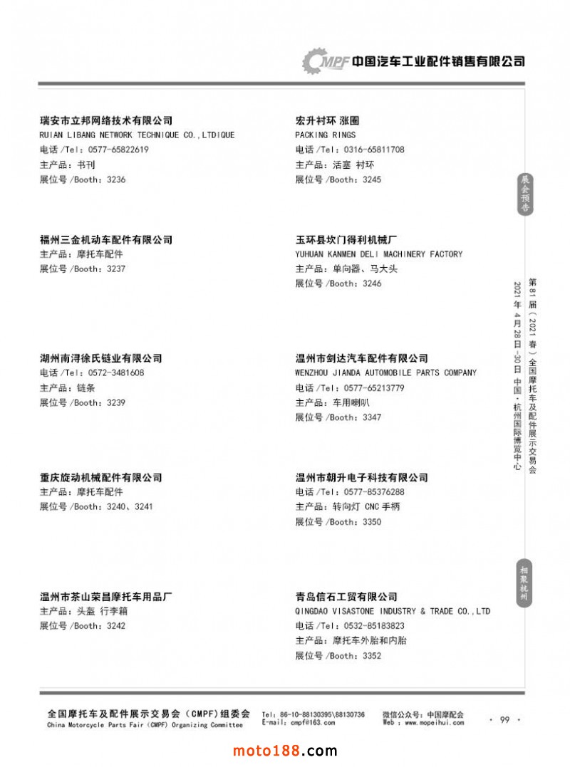 內99 第80屆(2020秋)全國摩托車及配件展示交易會-廣州站參展企業信息