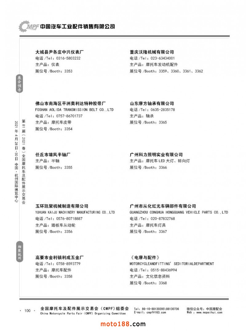 內100 第80屆(2020秋)全國摩托車及配件展示交易會-廣州站參展企業信息