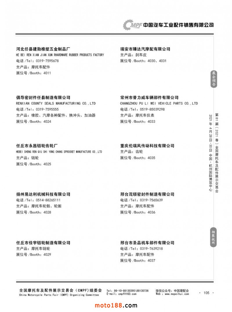 內105 第80屆(2020秋)全國摩托車及配件展示交易會-廣州站參展企業信息
