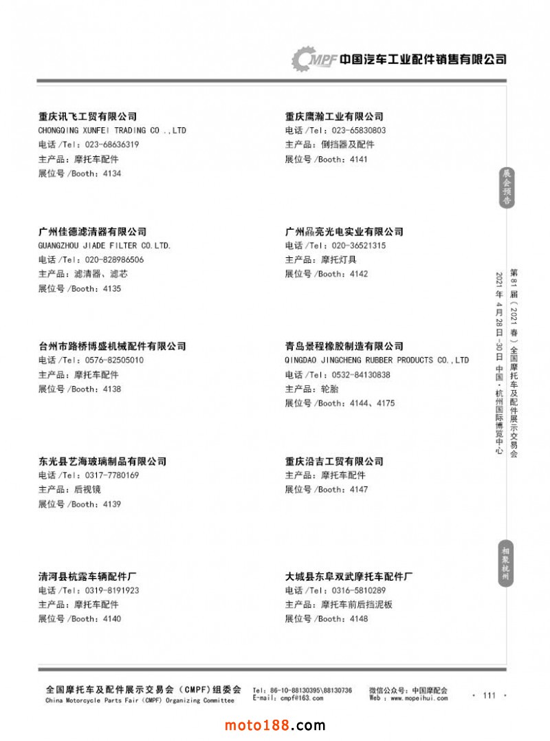內(nèi)111 第80屆(2020秋)全國(guó)摩托車及配件展示交易會(huì)-廣州站參展企業(yè)信息