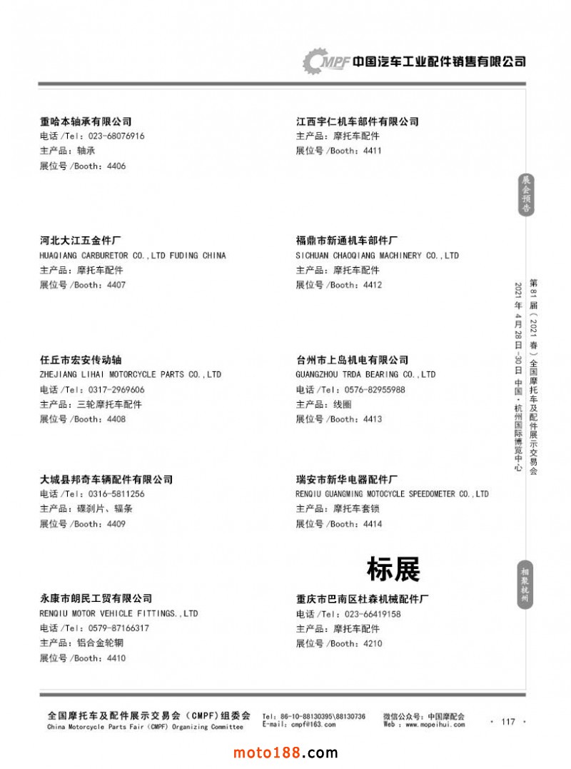內(nèi)117 第80屆(2020秋)全國(guó)摩托車(chē)及配件展示交易會(huì)-廣州站參展企業(yè)信息