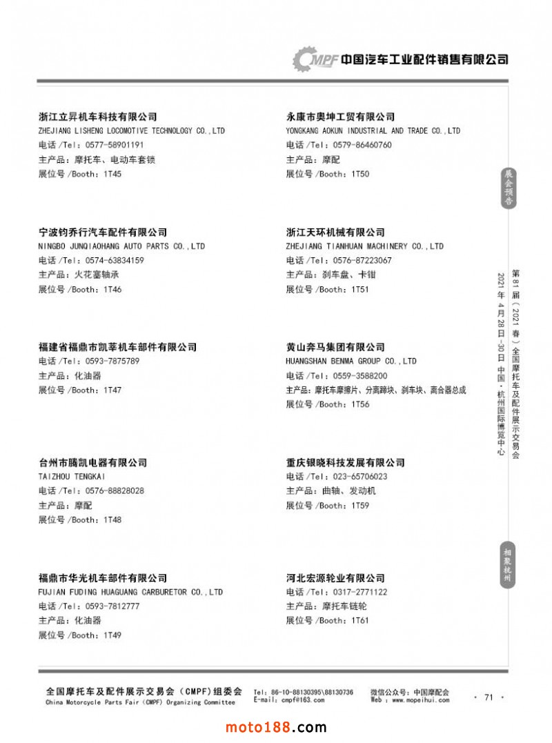 內71 第80屆(2020秋)全國摩托車及配件展示交易會-廣州站參展企業信息