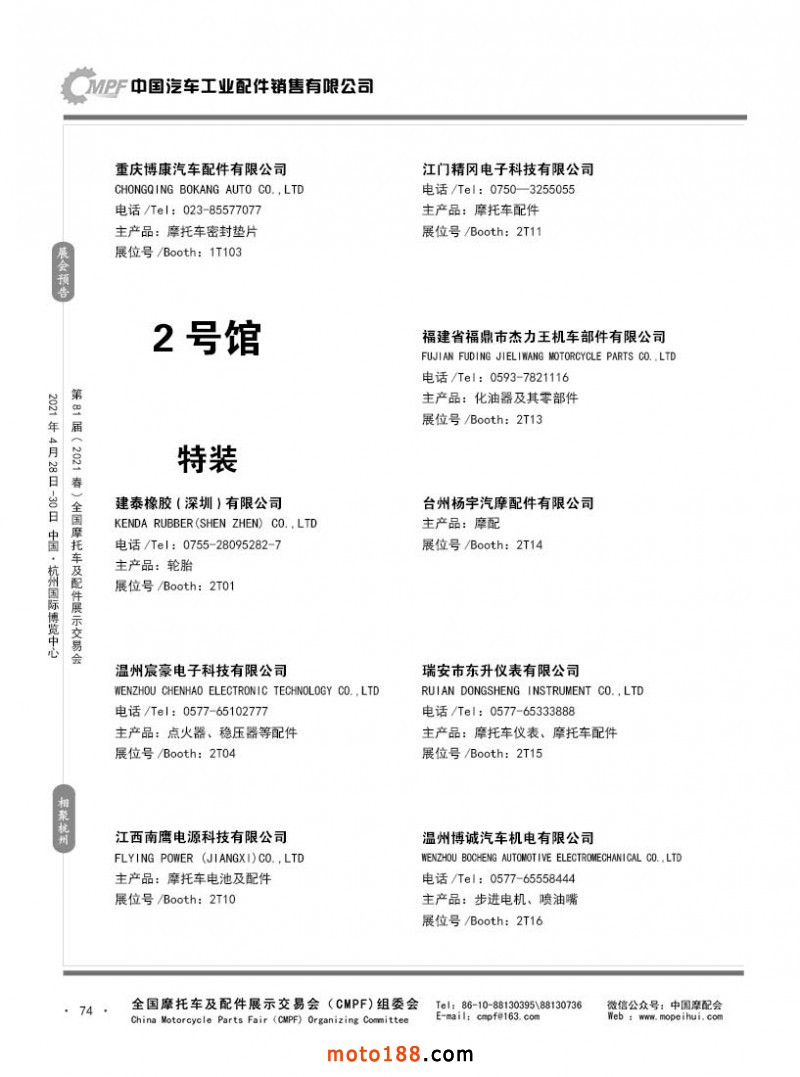 內(nèi)74 第80屆(2020秋)全國摩托車及配件展示交易會(huì)-廣州站參展企業(yè)信息