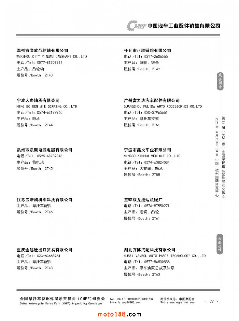 內(nèi)77 第80屆(2020秋)全國(guó)摩托車及配件展示交易會(huì)-廣州站參展企業(yè)信息