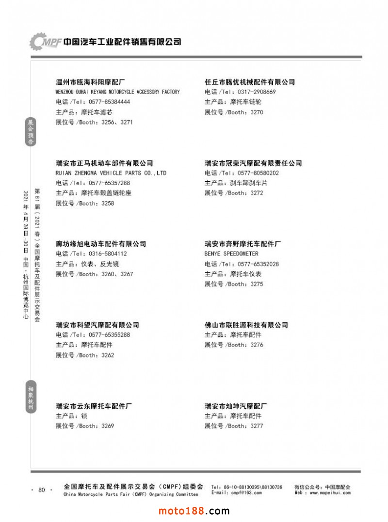 內80 第80屆(2020秋)全國摩托車及配件展示交易會-廣州站參展企業信息