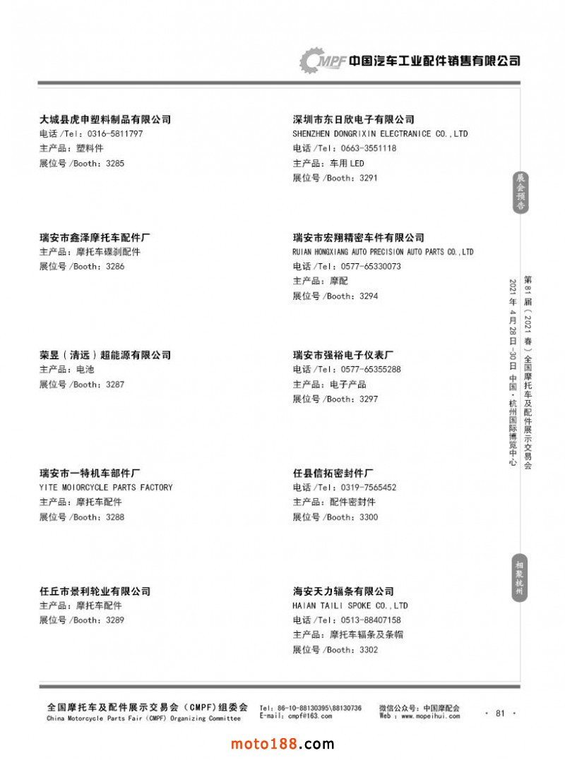 內(nèi)81 第80屆(2020秋)全國摩托車及配件展示交易會-廣州站參展企業(yè)信息