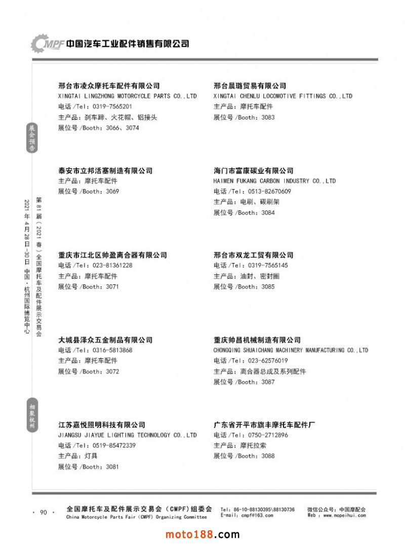 內90 第80屆(2020秋)全國摩托車及配件展示交易會-廣州站參展企業信息