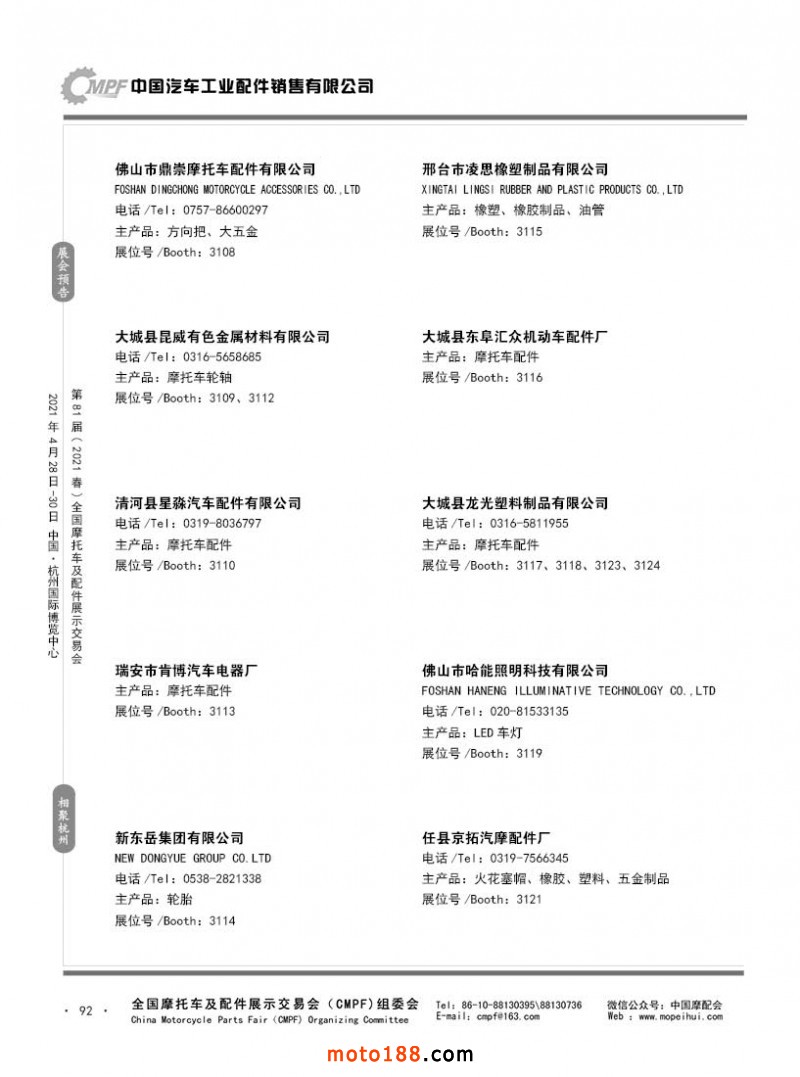 內(nèi)92 第80屆(2020秋)全國摩托車及配件展示交易會(huì)-廣州站參展企業(yè)信息