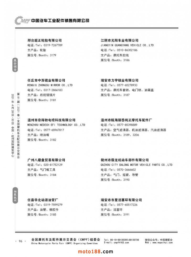 內96 第80屆(2020秋)全國摩托車及配件展示交易會-廣州站參展企業信息