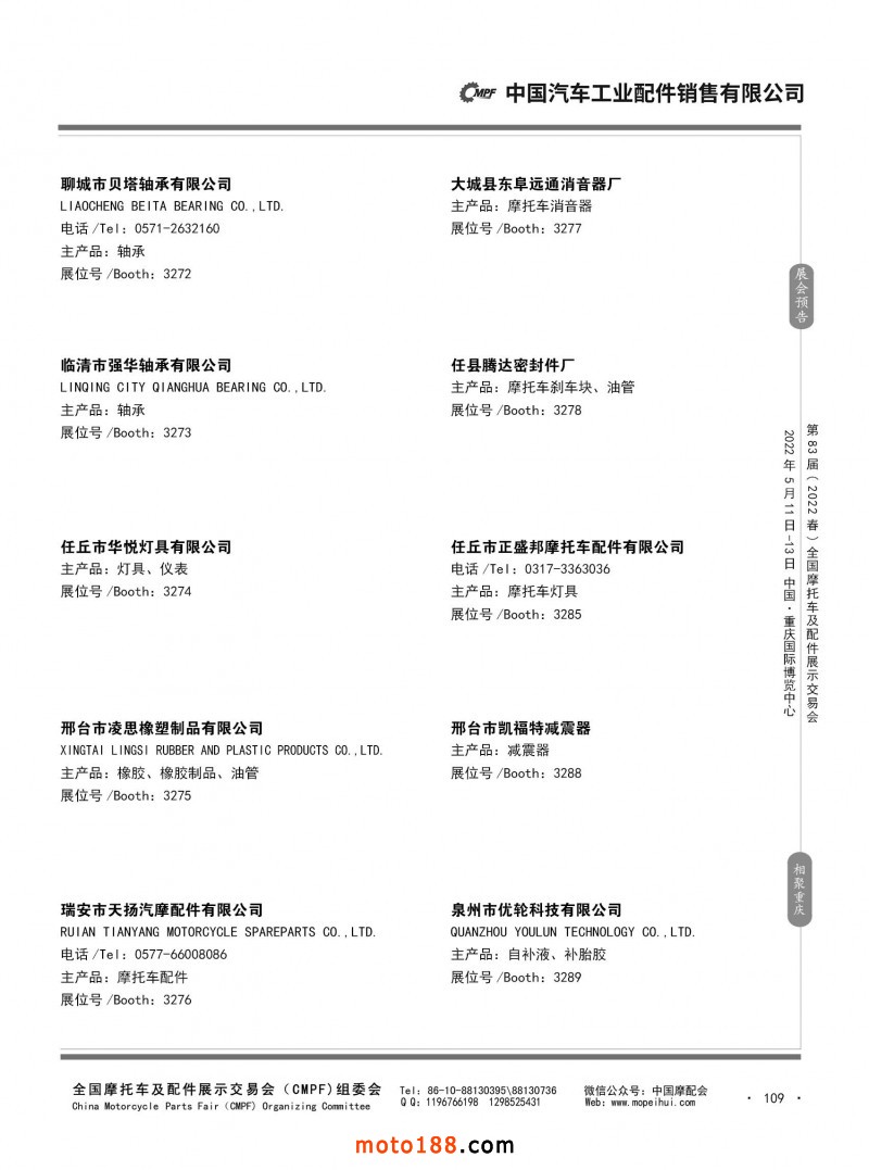內109 第82屆(2021秋)全國摩托車及配件展示交易會-廣州站參展企業信息
