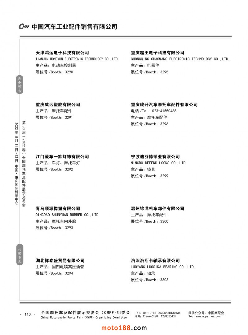 內110 第82屆(2021秋)全國摩托車及配件展示交易會-廣州站參展企業信息
