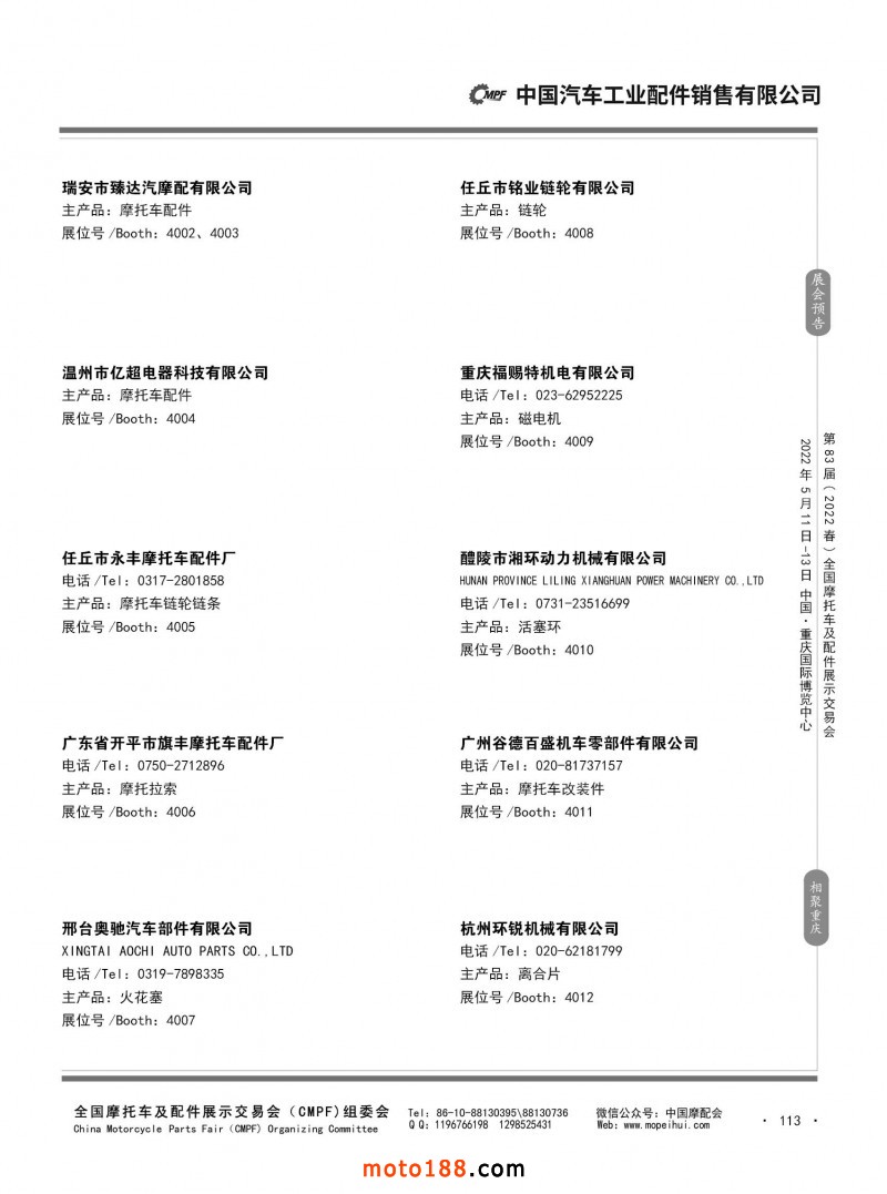 內113 第82屆(2021秋)全國摩托車及配件展示交易會-廣州站參展企業信息