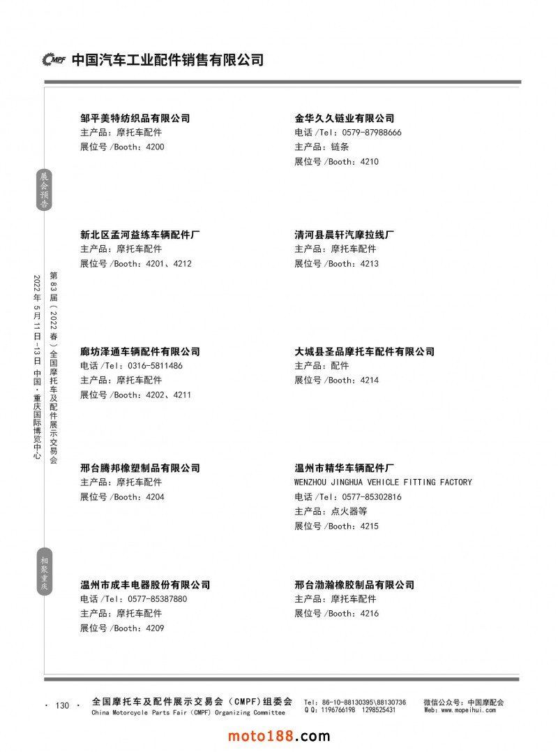 內130 第82屆(2021秋)全國摩托車及配件展示交易會-廣州站參展企業信息