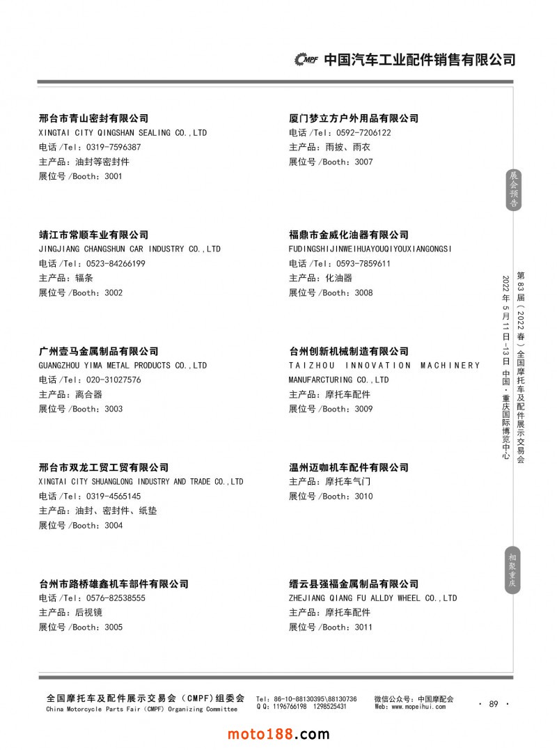 內89 第82屆(2021秋)全國摩托車及配件展示交易會-廣州站參展企業信息