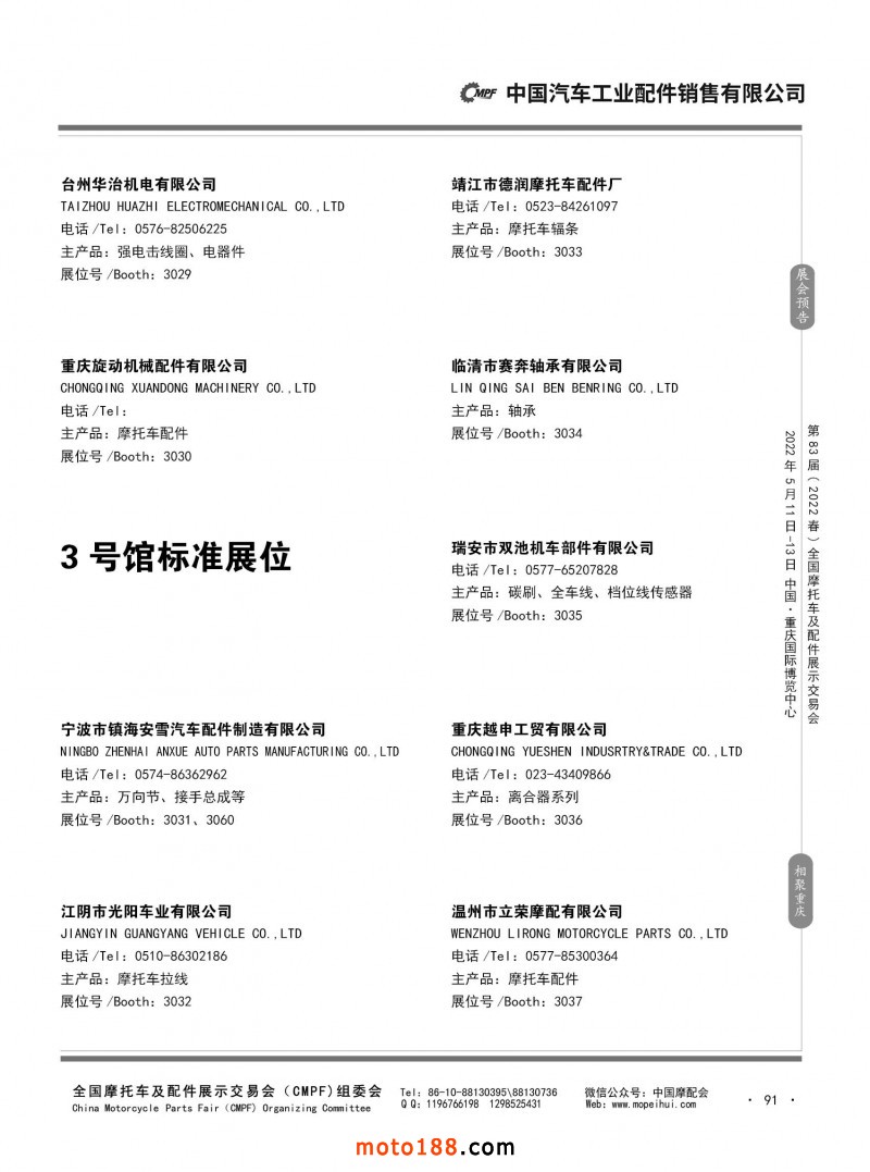 內91 第82屆(2021秋)全國摩托車及配件展示交易會-廣州站參展企業信息