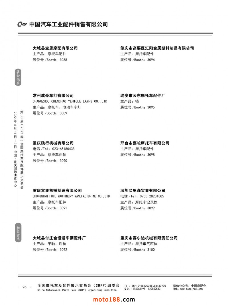 內(nèi)96 第82屆(2021秋)全國摩托車及配件展示交易會-廣州站參展企業(yè)信息