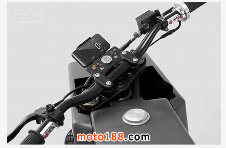 這怪車用的是建大測試輪胎,定制款離合器和定制款制動桿。像儀表盤這種部件當然也是定制的,轉向燈顯示和騎行專用的 GPS都在那點不大的小面板上。更多的組件可以通過通過智能手機體現,車頭處有手機卡托的位置。