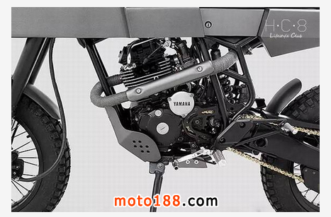 這款改裝版 Yamaha Scorpio 很明顯的展示出了粗獷的風格,可能是設計師以為粗壯才是他的真愛,組裝才是男人的機車。這種暗灰色全鋁制車身在設計上有一些優點,在車身重量上可以很好的把控。對即要求外形又要求速度感的車手來說,這點相當對味。