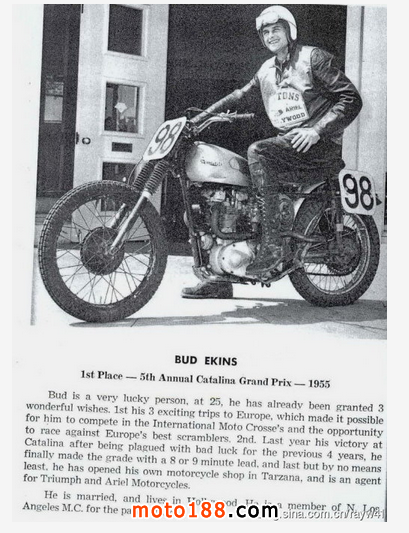 除了與McQueen共同參賽之外,Bud Ekins早在50年代開始便熱衷于各種摩托車賽事,而這輛紀念車款主要是為了紀念Bud Ekins在1955年,參加Catalina GP賽事拿下冠軍的出色表現。