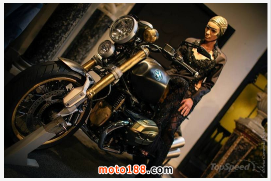哥特式風(fēng)格的妝容和服飾,奢華精美的金箔R nineT,魅惑的黑加上華麗的暗金充滿著貴族的氣息,復(fù)古迷人的色調(diào)讓人有瞬間穿越中世紀(jì)的感覺。