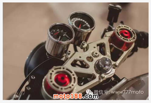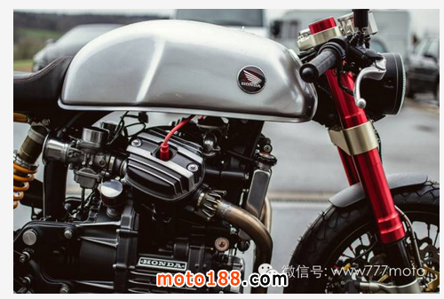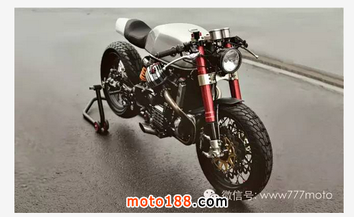 為完整保留那粗曠的性感,他將引擎外觀烤上深邃的霧黑再配上那Y字排氣管前段,完全展現(xiàn)老V缸的美!追求一個極簡造型他去除掉不必要的零件與車殼,讓車身輕量化同時線條變得利落,簡單的鋼管后搖臂配上?lhins中置避震,引擎到后輪線條一氣呵成。為了展現(xiàn)咖啡風(fēng)格前叉用上強(qiáng)壯的紅色倒叉,三角臺角度設(shè)定的更挺直,讓CX500的重心向前傾倒,最后裝上分離斜把、單座皮椅、拋光的大油箱與單片后土除。一個重獲新生濃郁咖啡味的HONDA CX500出現(xiàn)在你眼前。