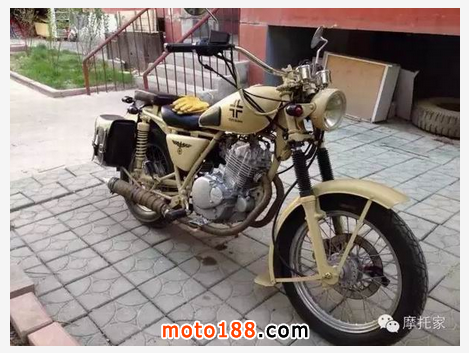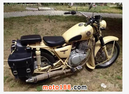 顏色和模型是不是一模一樣,油箱上貼十字標(biāo)表明身份,后輪避震改裝復(fù)古直立式,坐姿更加舒適略帶侵略性,改裝仿哈雷90cm寬25mm直徑大雁把,13升超大油箱,提升巡航里程,風(fēng)門改裝至把頭,復(fù)古感覺超強(qiáng),加強(qiáng)冷車啟動(dòng)效率,郵遞員得有邊箱裝那些信嘛~。前后輪改裝建大輻條式輪胎,復(fù)古獨(dú)立座包,長江750前后擋泥板使整車感覺更加厚重復(fù)古,仿哈雷手把開關(guān),功能性更強(qiáng)增強(qiáng)機(jī)械手感。改裝twpo汽用蘑菇頭進(jìn)氣,里程表、轉(zhuǎn)速表改裝kege兩個(gè)復(fù)古單表,排氣包裹防燙布,改裝腳剎踏板,改裝米庫尼300化油器加大供油,再退后兩步迷上眼感受下整體氛圍,這股二戰(zhàn)摩托的趕腳還是很濃的嘛~。