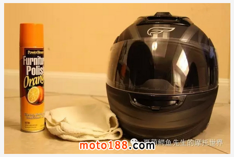 給頭盔外殼打蠟,你可以使用那種包含清潔,拋光,打蠟功能的汽車打蠟產品,也可以使用家里容易找到的地板蠟。