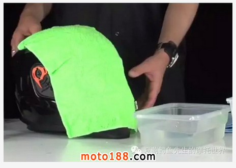 將頭盔整個浸入裝滿溫度適宜,加了中性洗衣液的水盆中,然后用軟毛的小刷子對頭盔內部和不能拆下的內襯進行刷洗。