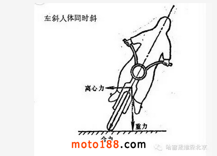 摩托車傾斜轉彎,無不是通過身體的移動對車體施加荷載的結果。但是“有意識地先移動身體”,這種理解是錯誤的。正確的理解 是:為了使車體傾斜,你給車體加上了適當的荷載,而當摩托車開始傾斜后,又通過身體的移動,使先前加上的荷載又回到平衡的位置。