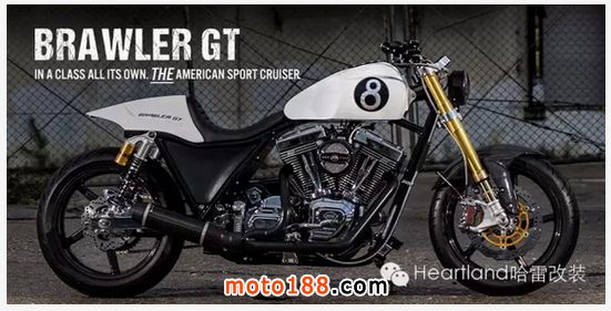 Brawler GT在2010 AMD 世界機車改裝大賽中首秀便斬獲了世界機車改裝(Production Class)第二名。經(jīng)過全美拉力、公路賽道的歷練,橡膠墊傳動系統(tǒng)、賽車級剎車系統(tǒng)及懸掛系統(tǒng),靈感來自于FXR。最好的運動巡航車,沒有之一。