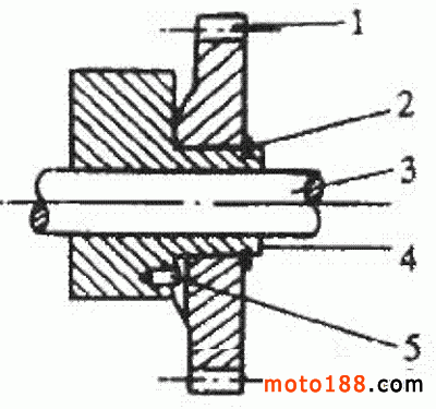 5. 排除故障的方法:一是將柱銷孔擴大,重新車制新銷,這種方法較麻煩;二是將凸輪臺階外圓周圍用電焊焊上幾個極薄的焊點并磨平,只留下極微的焊跡,使凸輪與時規齒輪通過焊點固連在一起。