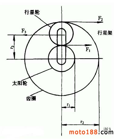 M 3 = F 3 r 3 ( r 1 r 2 分別為太陽輪和齒圈節圓上的半徑)