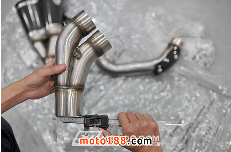 Termignoni的改裝管采用全直通設計,沒有旁通乏的結構,靠的是前段的管徑縮小,然后依次放大提升流速,來彌補低轉速扭力不足的現象,當然還有一個關鍵在于Termignoni還通過競技用改裝ECU電腦,來進行點火、供油的調整,減少低轉速扭力不足的情況發生。