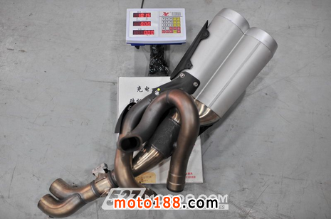 無論是改裝排氣還是原廠排氣,都是采用2-1-2的方式設計,不過在排氣的管徑上則有些為的差異。Termignoni在頭段、中段的排氣口徑,基本上與原廠排氣并無太大差異。原廠排氣在頭段的前、后缸的的口徑分別為--mm/55mm(第一缸的出口因為是扁口所以無法進行量測)、58mm/55mm,而Termignoni的前段口徑則為--mm/54mm、58mm/54mm。在中段的部份,前后兩缸匯集在一起,原廠口徑為58mm/55mm,而Termignoni口徑為57mm/68mm。而在尾段方面,Termignoni排氣僅為原廠排氣的1/3,可想而知Termignoni內管并沒有太多回壓的阻力與隔板,幾乎為直通管!在口徑方面,原廠管口徑僅為58mm,Termignoni改裝口徑則達到了70mm。