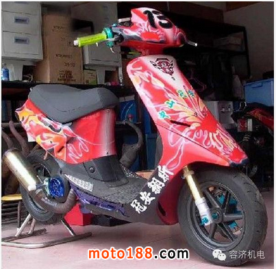 自從禁摩以來,我的小踏板就再沒上過路,目前摩托車慢慢由代步工具變成娛樂玩具,無聊之際便有了改裝的想法,今天有點空,改裝開始了,在一個小修車行改的,因為工錢便宜,原車是100型小踏板,只能跑80,改裝后動力相當暴躁,給油抬頭高速過百,不同的改裝配件,效果也會不同,可以小改,也可以暴改,不信的可以來跑跑,自從我的改裝成功后,很多朋友也萌生了改裝的想法,畢竟人生耐得瘋狂一回,青春一去不復還,改玩的時候一定要玩的瀟灑。