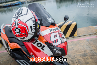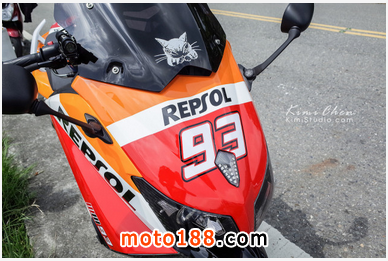 一開始本來想說用成我最愛的Ferrari好了,不過實在沒想到有什么主題適合所以只好放棄,后來那陣子都在看MM93連勝,就想說不然改成我最支持的車手Marc Marquez好了,所以REPSOL,豹豹TMAX就出現了。