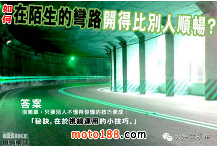 駕駛電單車的樂趣,除了自由奔放之外,還有處理連 綿彎道的樂趣。車廠的製作技術(shù)和駕駛?cè)说募夹g(shù)高低,在應付連續(xù)彎道時便會無所遁形。車種受先天性所限,應付彎道的潛質(zhì)沒有太多改造空間。但人類有學習能 力,可以通過知識學習和肌肉記憶來提升彎道技術(shù)。要愉快地在山林之間獨走,要無拘無束地在海岸線之間暢游,必需擁有正確的操控技巧和視線運用。以下時間, 我們集中討論視線運用: