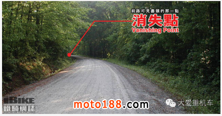 「消 失點Vanishing Point」又名「Limit point」或「Arrow Head」,是前路左右路肩線交疊在一起的那一點,也代表著前路視野盡頭,或引領(lǐng)著前進方向的箭頭。憑著對Vanishing point的觀察,我們可以令陌生彎道上的車速更平均,減少不必要的減速,和把握時機打開油門。