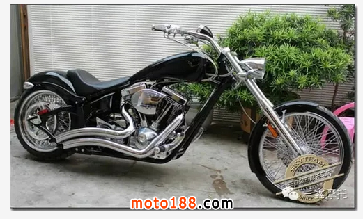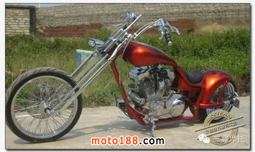 Chopper風格是最深入大家印象的一種,不論那個層面都是要求技術比較嚴格的。也是對于量產車改裝變化最大的一種,作為CUSTOM定制來說Chopper也是看起來給人感覺最簡練,最囂張的,由于要達到最簡化的效果,車體很多部分都是要放棄。這個類型的CUSTOM車大多是以前后輪軸1/2點正好處于發動機最前吊耳的地方為重心點,達到這個位置之后,前叉必須加長,產生一種修長的風格車。由于達到這些要求,車所變化出來的樣子極其夸張,所以容易被大家記住。也是車主一般經常選擇的風格。Chopper風格的涂裝一般比較麻煩和高檔,在漆面制作的環節里大部分運用了許多復雜的工藝,好的涂裝會根據改裝者的想法和整車融入一體,達到獨一無二的風格。