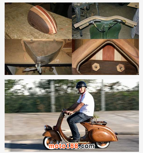 這臺木質摩托車是專門為他心愛的女兒Daniela 所創造,圖中除了可以看到最終的樣子,更是可以一睹這輛車的制作過程。可以看到Carlos Alberto 先是畫了一幅心中摩托車的草圖,然后根據草圖選取合適的木材。