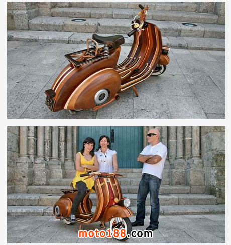 這位名為Carlos Alberto 的木匠可謂是化腐朽為神奇,他將自家倉庫廢舊不堪的Vespa 摩托車彷佛賦予了全新的生命,一臺華麗嶄新的Vespa摩托車便呈現在了人們的眼前。
