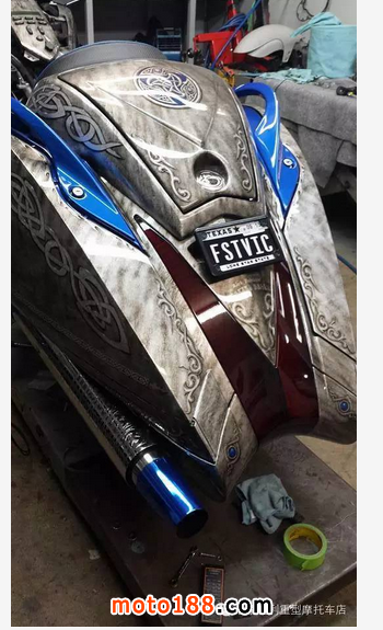 核心提示: 這臺威神的設計靈感來源于紋身圖案,縱橫交錯的刺藤花紋布滿車身,精細的涂裝紋身伴隨威神重獲新生。猜想駕駛這樣的機車應該